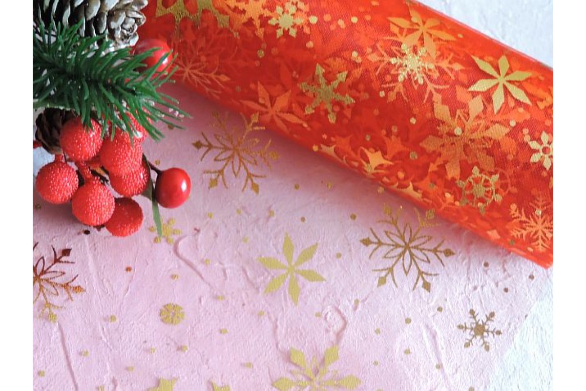 Фатин "Снежинки" 15 см, цв. красный/золото - 1м., 803-379, Китай, Фатин