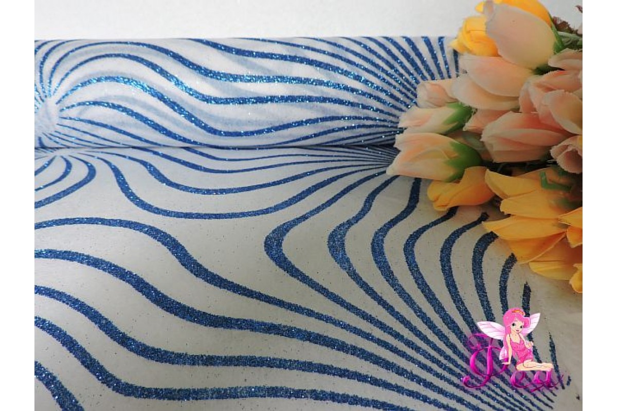 Фетр «Узор с блестками» 48 см, синий (цена 1 м)