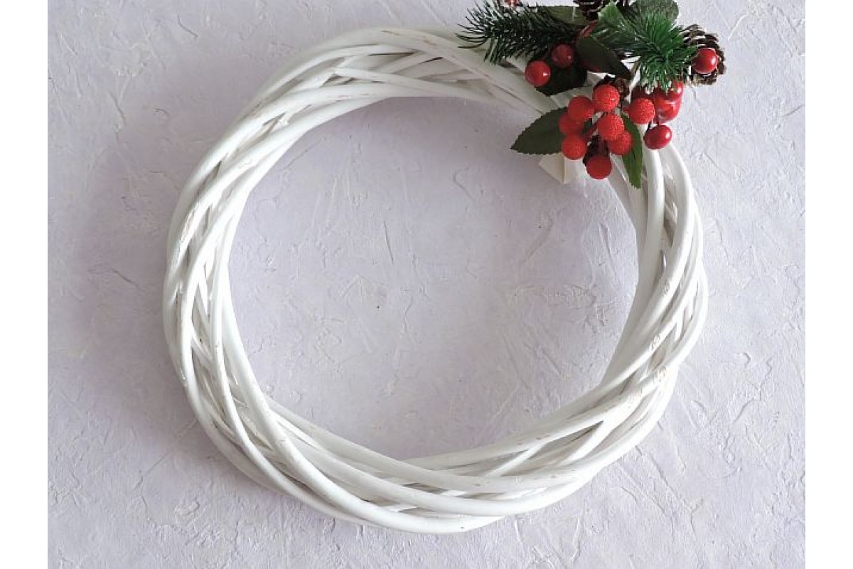 Венок из лозы 25 см, цв. белый - 1 шт.