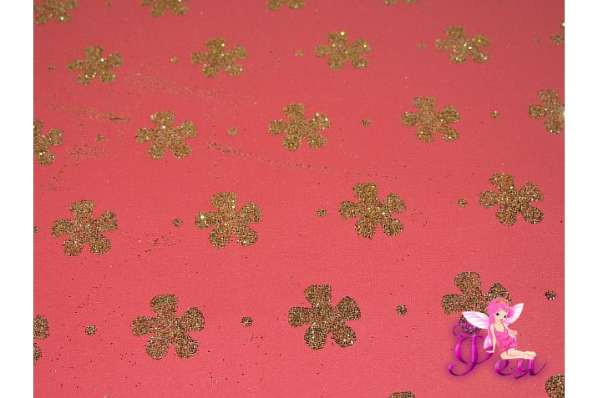 Фоамиран декоративный 2 мм (20*30 см), в цветочки ( коралловый с золотом) -1 лист