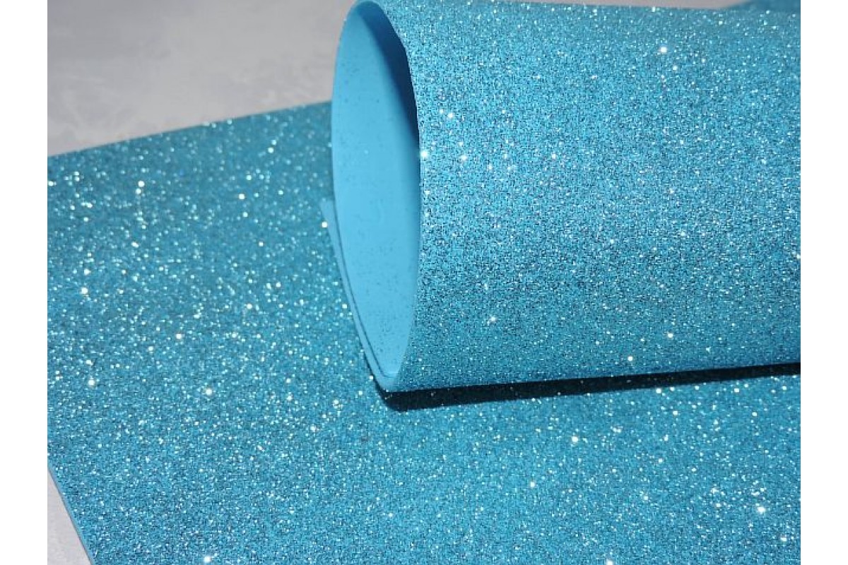 Фоамиран глиттерный 2 мм, цв. бирюзовый - 1 лист., 807-2, Китай, Глиттерный