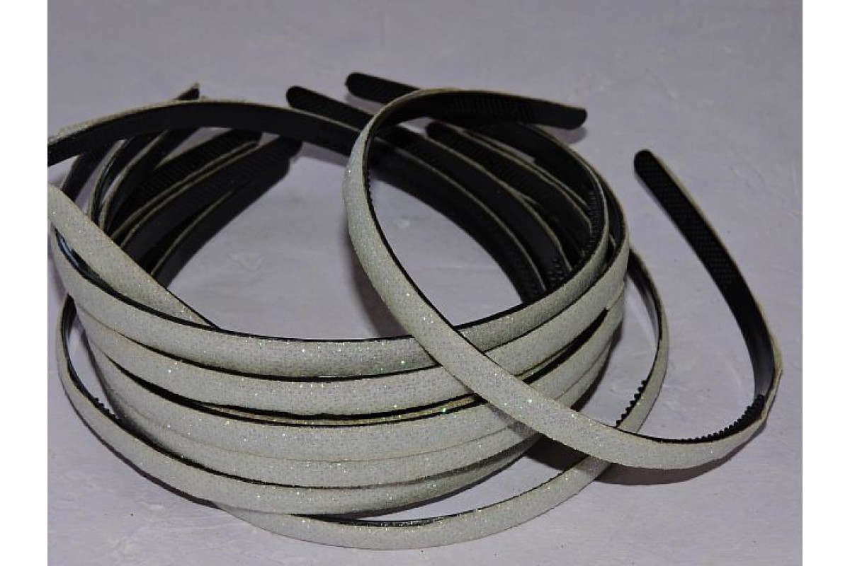 Ободок пластиковый с блестками 0,8 см,цв. белый - 1 шт