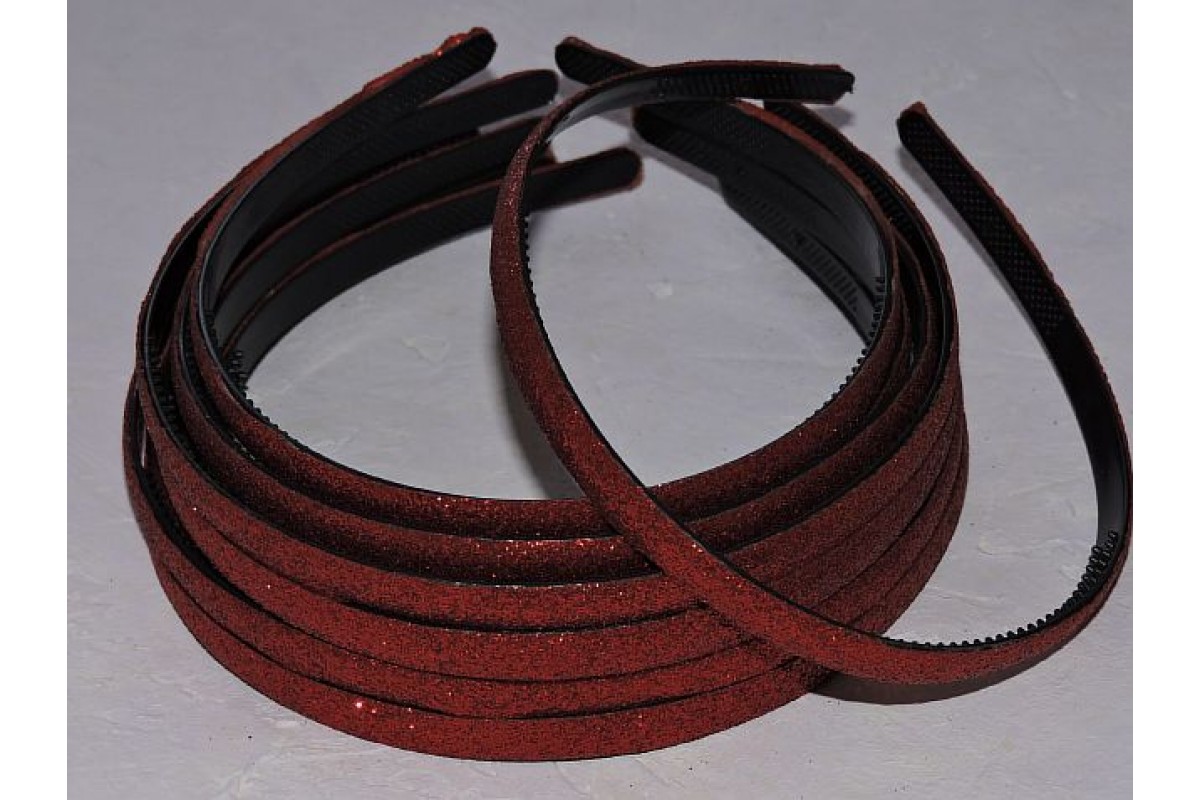 Ободок пластиковый с блестками 0,8 см,цв. красный - 1 шт