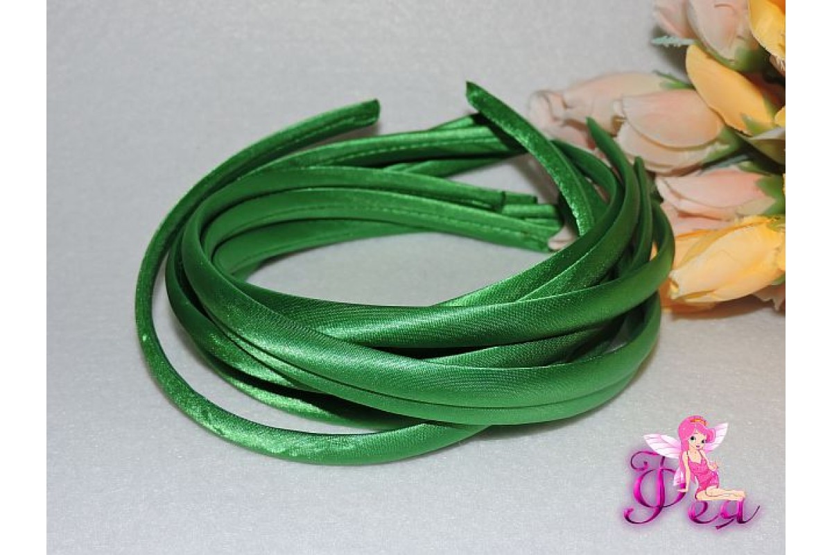 Ободок пластиковый в ткани 1 см, цв. зеленый