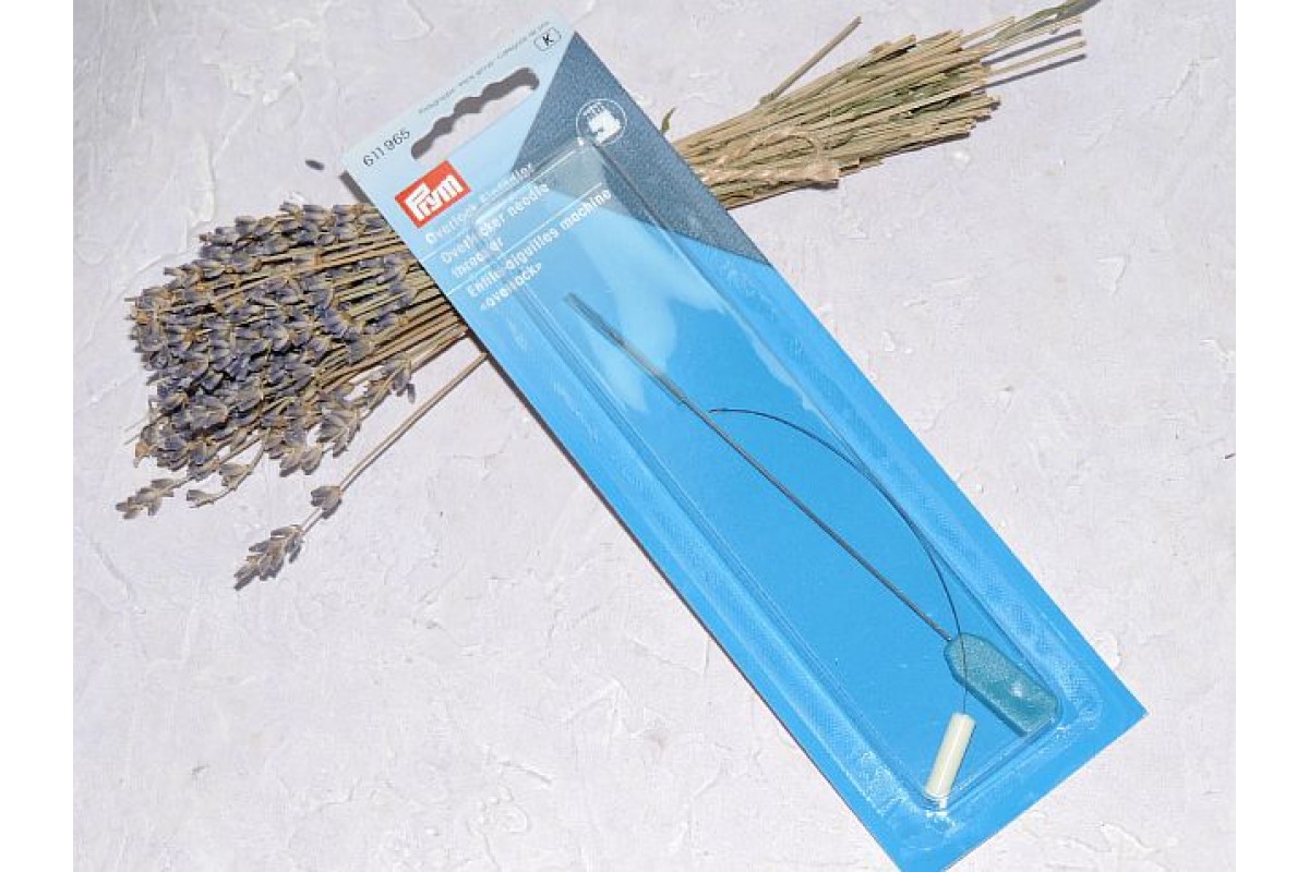 Эти нитевдеватели от Prym специально предназначены для вдевания на швейных машинах 'оверлок'. Набор состоит из нитепродергивателя для верхнего и нижнего челнока и еще одного нитепродергивателя для игл. Тонко изогнутая проволока из пружинной стали с белой пластиковой ручкой и крючком сначала проводится через нижний челнок и нить зажимается в крючке. Так можно удобно протянуть нить через ушко челнока. Теперь то же самое выполняется для верхнего челнока. Нитепродергиватель для игл функционирует как обычный нитепродергиватель для швейных игл, но для оптимального комфорта он имеет длинный стержень из проволоки из пружинной стали и ручку из синей пластмассы.