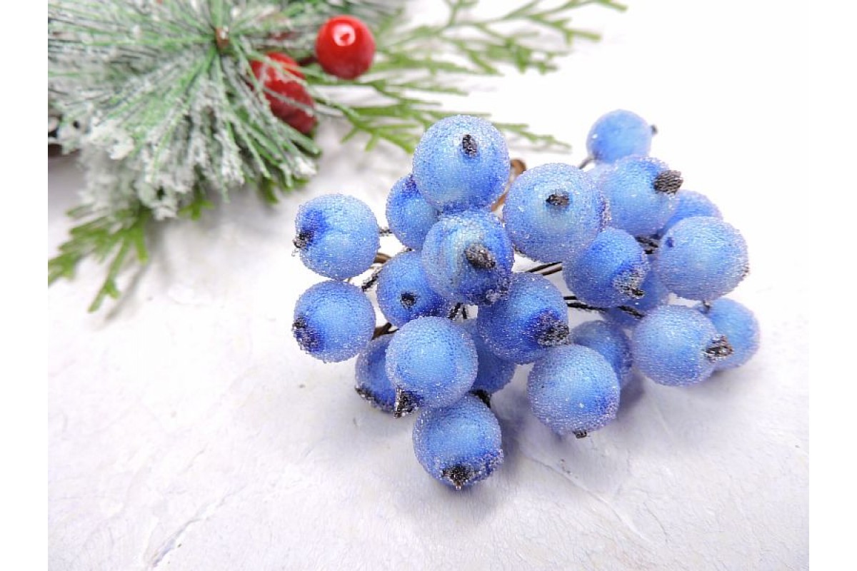 Ягодки на веточке сахарные 12 мм, цв. небесный ( 12 ягод), 000169, Китай, Ягоды