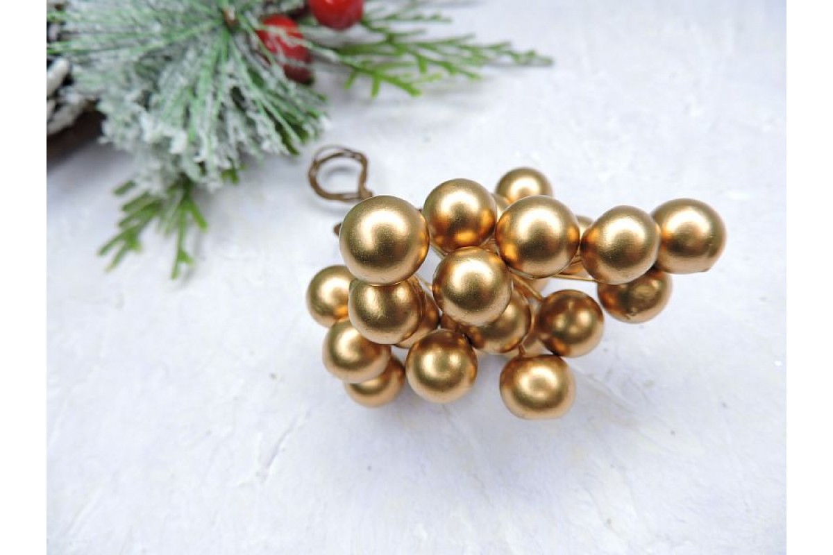 Ягоды на веточке глянец 10 мм , цв. розовое золото - 1 пучок.
