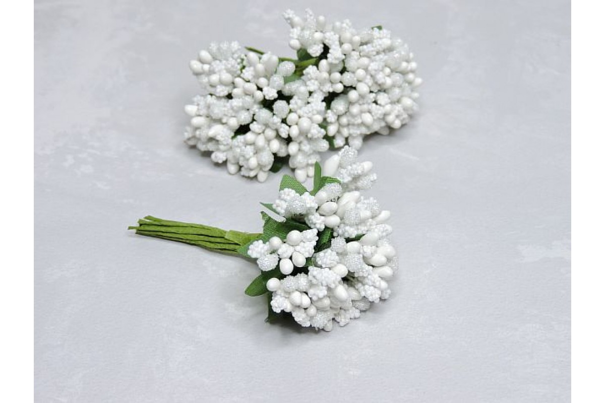 Букетик тычинок из 12 шт, цв. белый с сахарными вставками - 1 букетик.