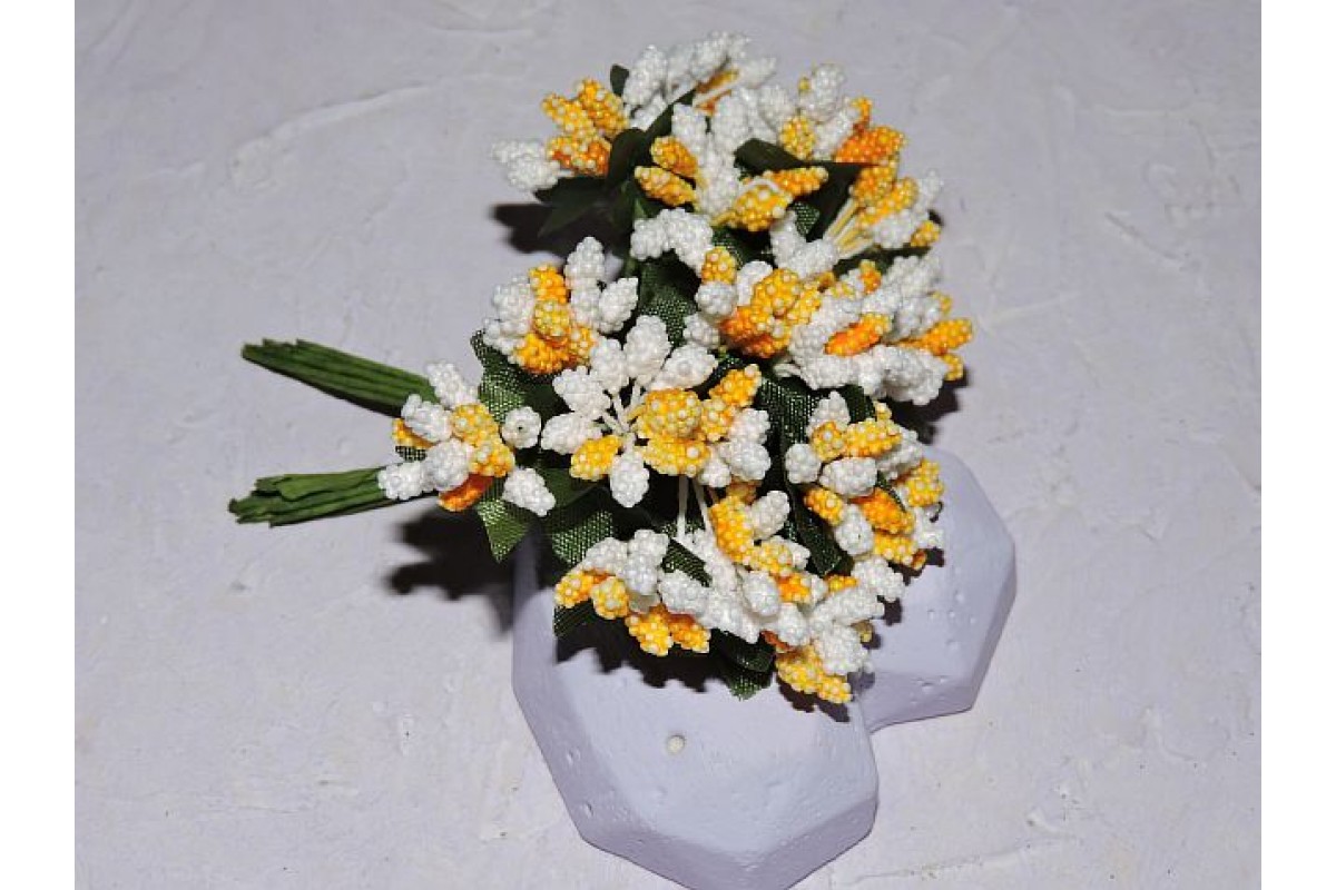 Букетик тычинок из 12 шт, цв. бело-желтый - 1 букетик.