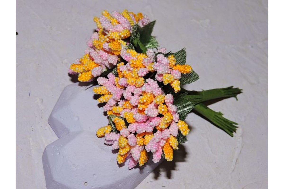 Букетик тычинок из 12 шт, цв. розово-желтый - 1 букетик.