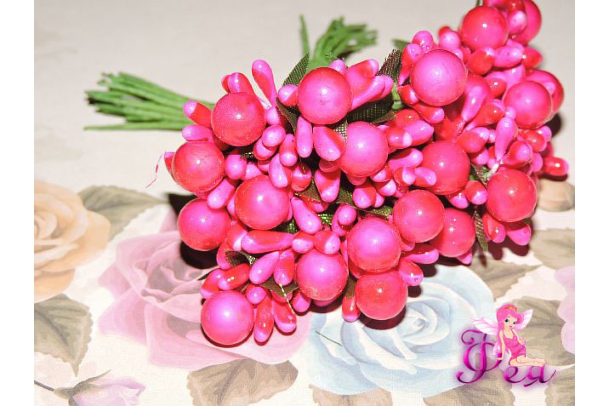 Букетики тычинок "зелень аралии" , цв. фукси из 12 шт.