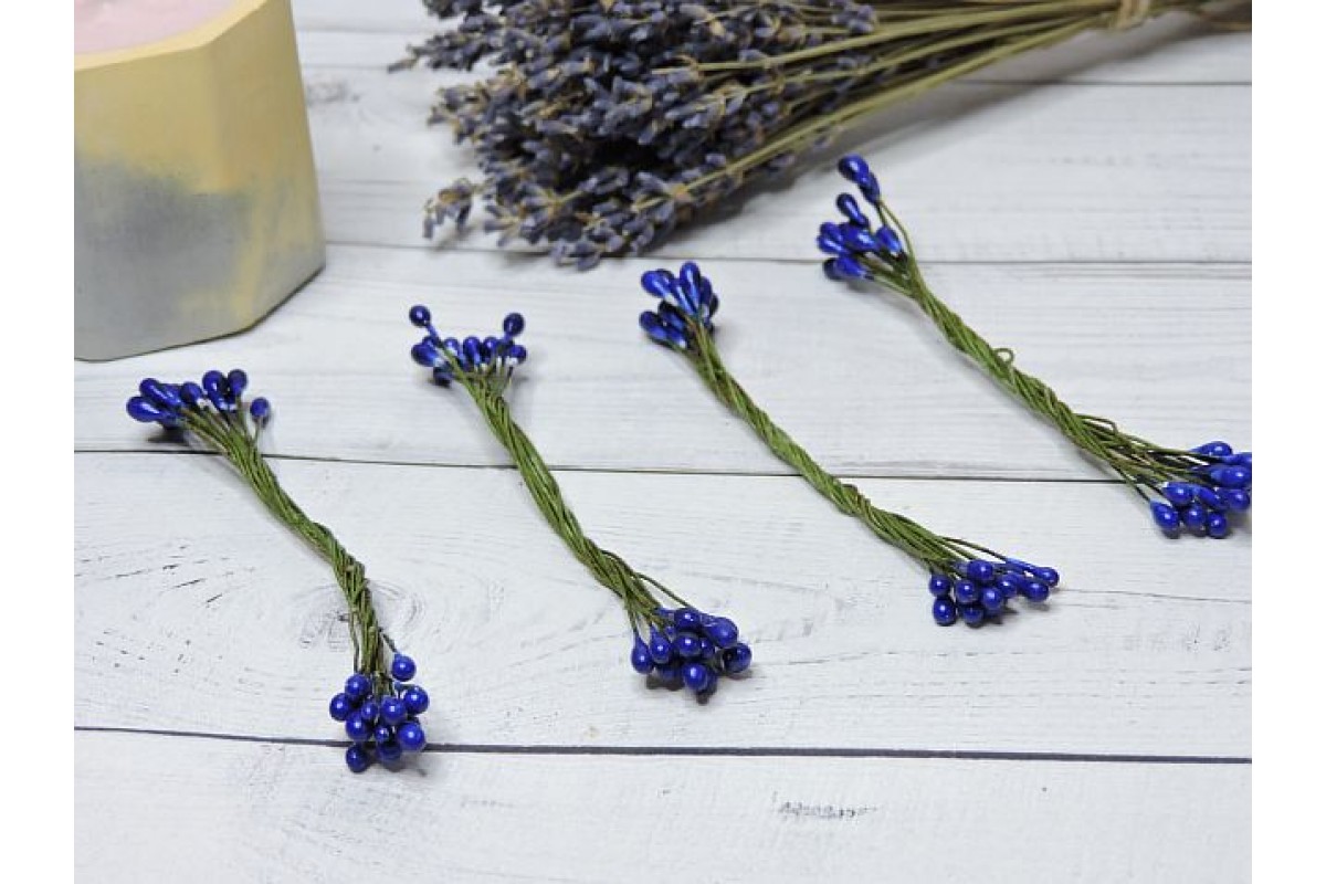 Тычинки на проволоке 4 мм, длина 9 см, цв. темно-синий - 1 связка.