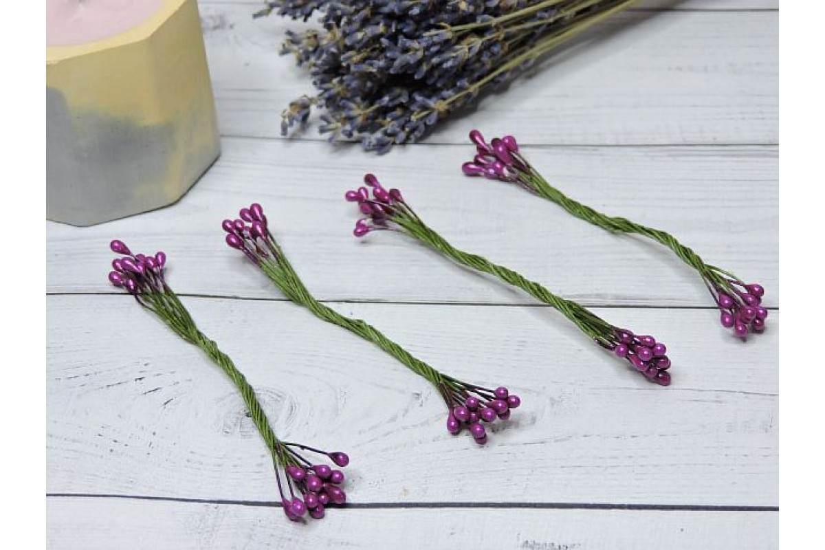 Тычинки на проволоке 4 мм, длина 9 см, цв. фиолетовый - 1 связка.