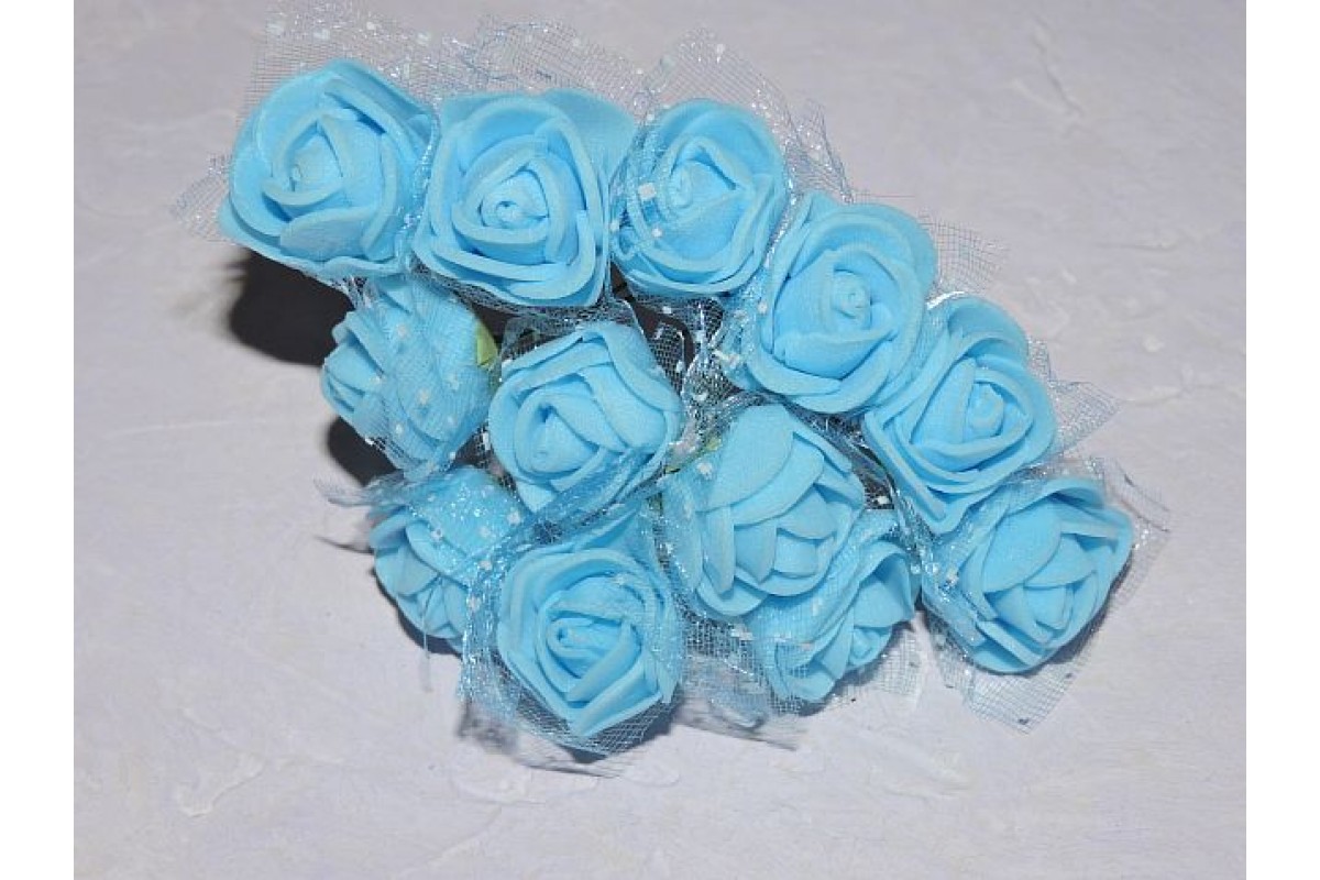 Розочка на веточке с сеточкой, 2.5 см-диаметр, цв. голубой (12шт), 16-107, Китай, Цветы из фоамирана