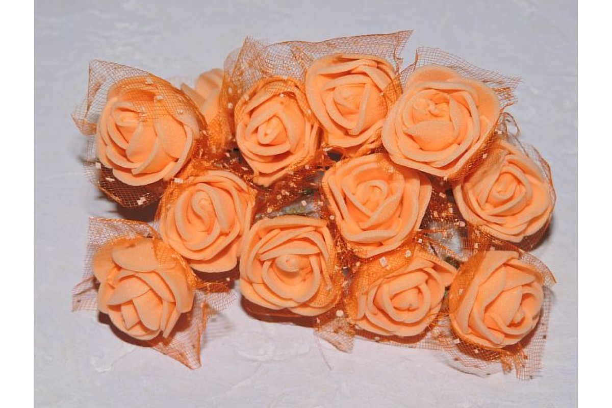 Розочка на веточке с сеточкой, 2.5 см-диаметр, цв. персиковый (12шт), 16-110, Китай, Цветы из фоамирана
