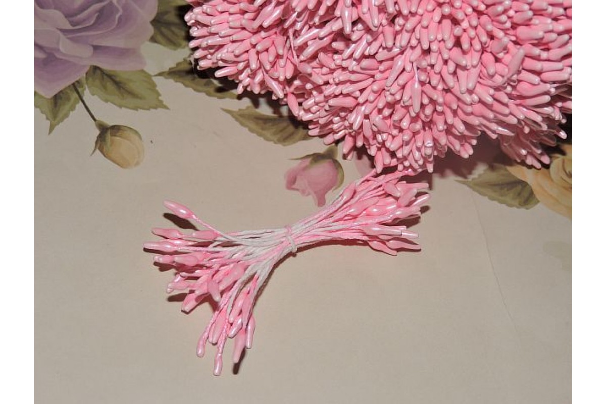 Тычинки 2*6 мм, в одной связке 30 нитей (60 головок), цв. светло-розовый