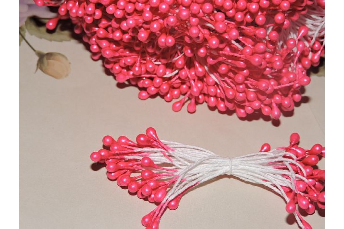 Тычинки 3 мм, в одной связке 30 нитей (60 головок), цв. ярко-розовый
