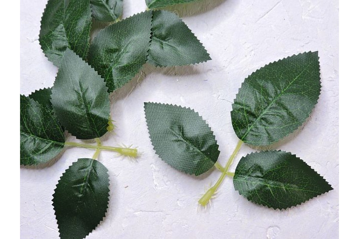 Листик розы 3шт. на веточке 13 см , цв. темно-зеленый - 1веточка.