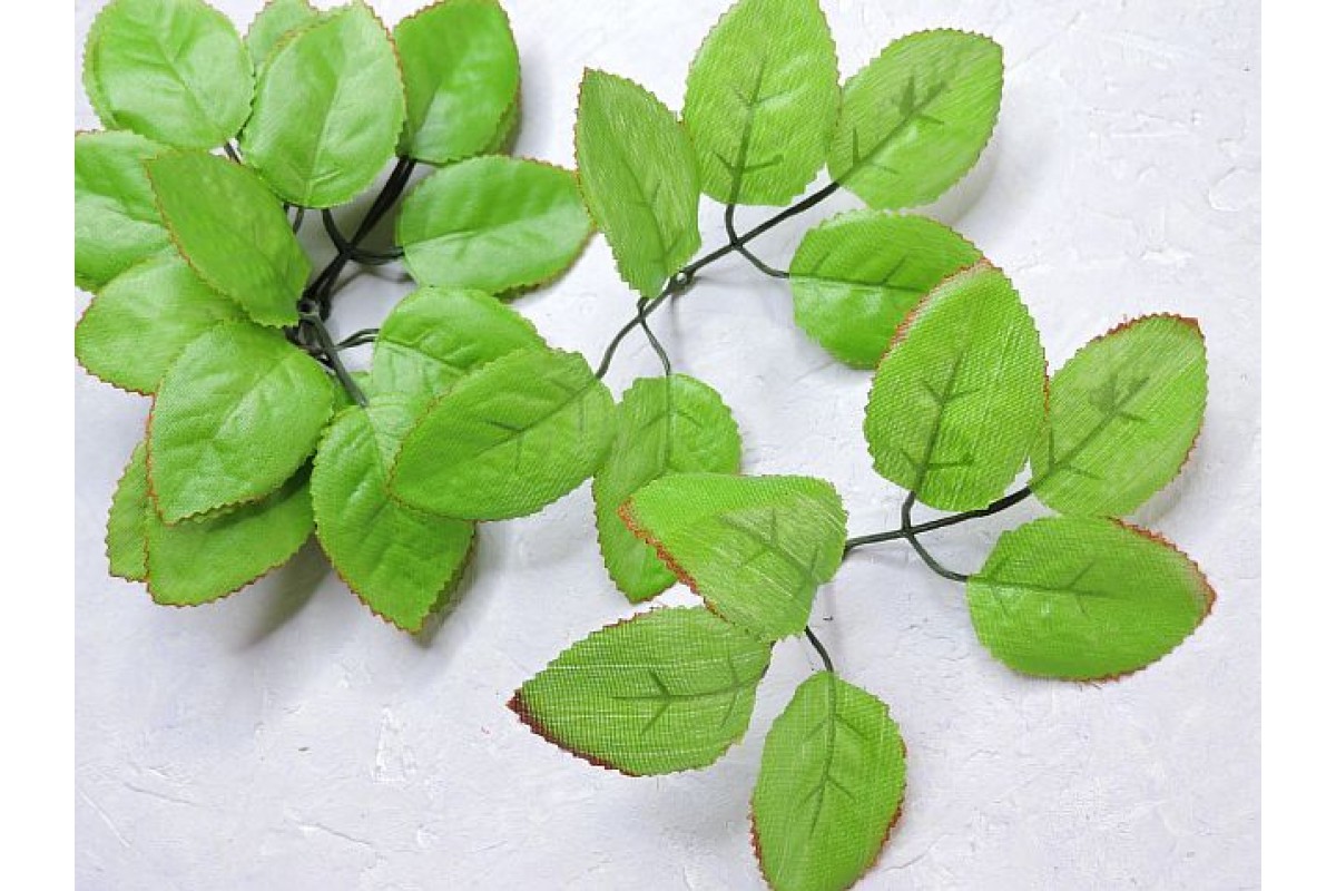 Листик розы 6шт на веточке, цв зеленый с каймой - 1веточка.