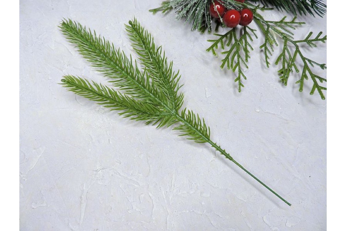 11052, Ветка ели декоративная 22 см, цв. светло-зеленый - 1 шт., , 0.84BYN, 9666, Китай, Зелень