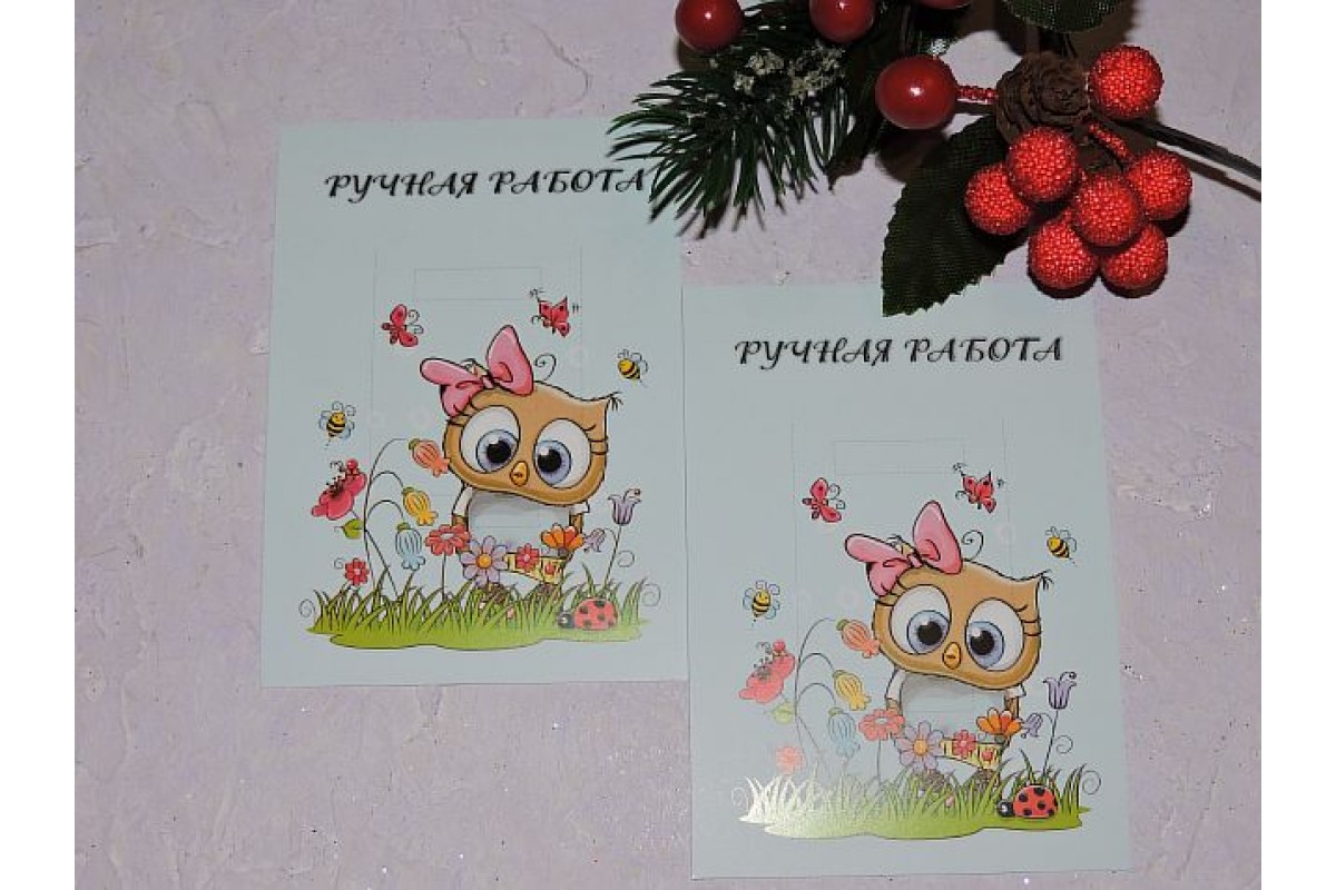 Карточка (подложка-открытка) 7*10 см "Ручная работа - совушка" - 1 шт.