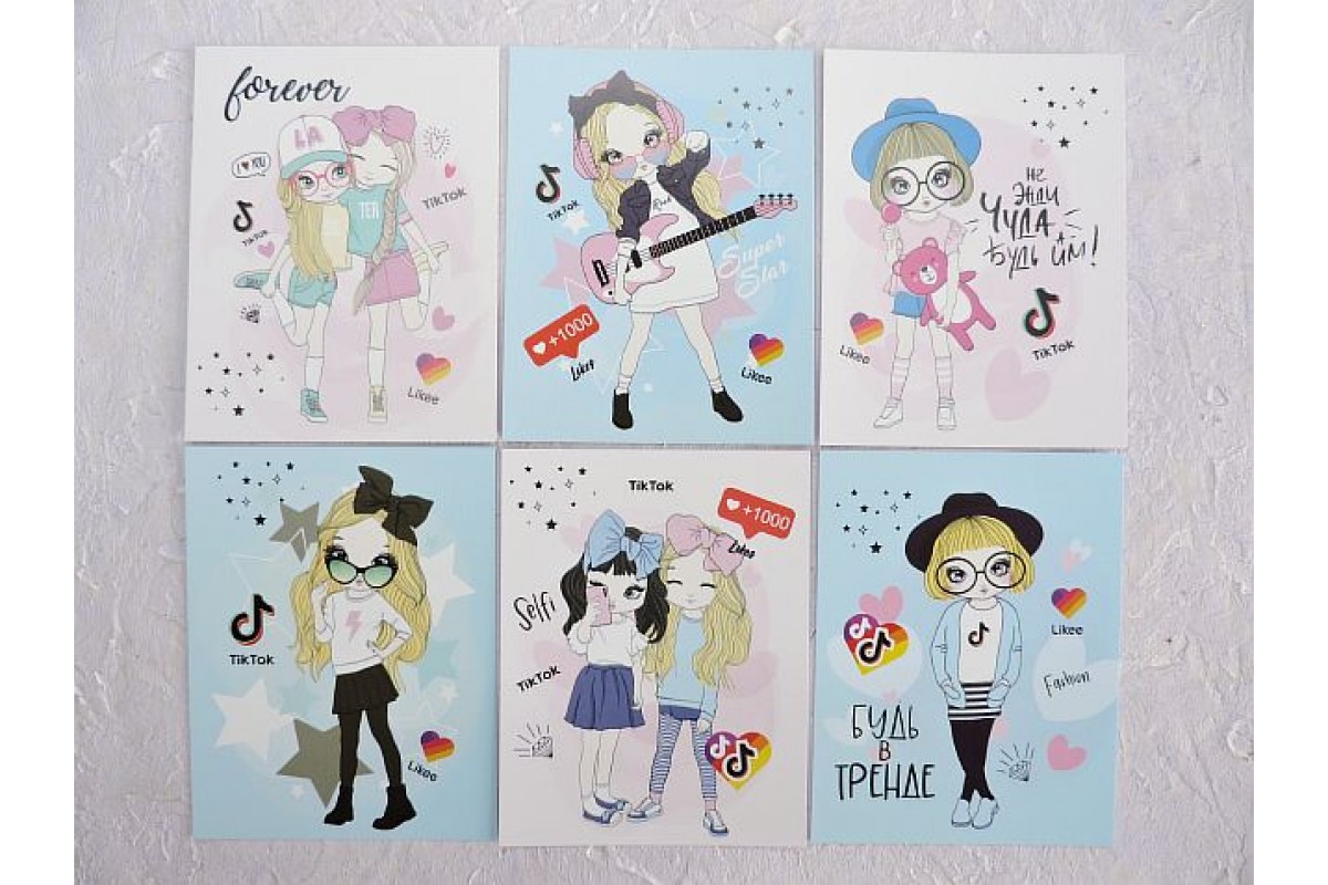 Набор открыток из 6 шт "Tik Tok" - 1 набор.