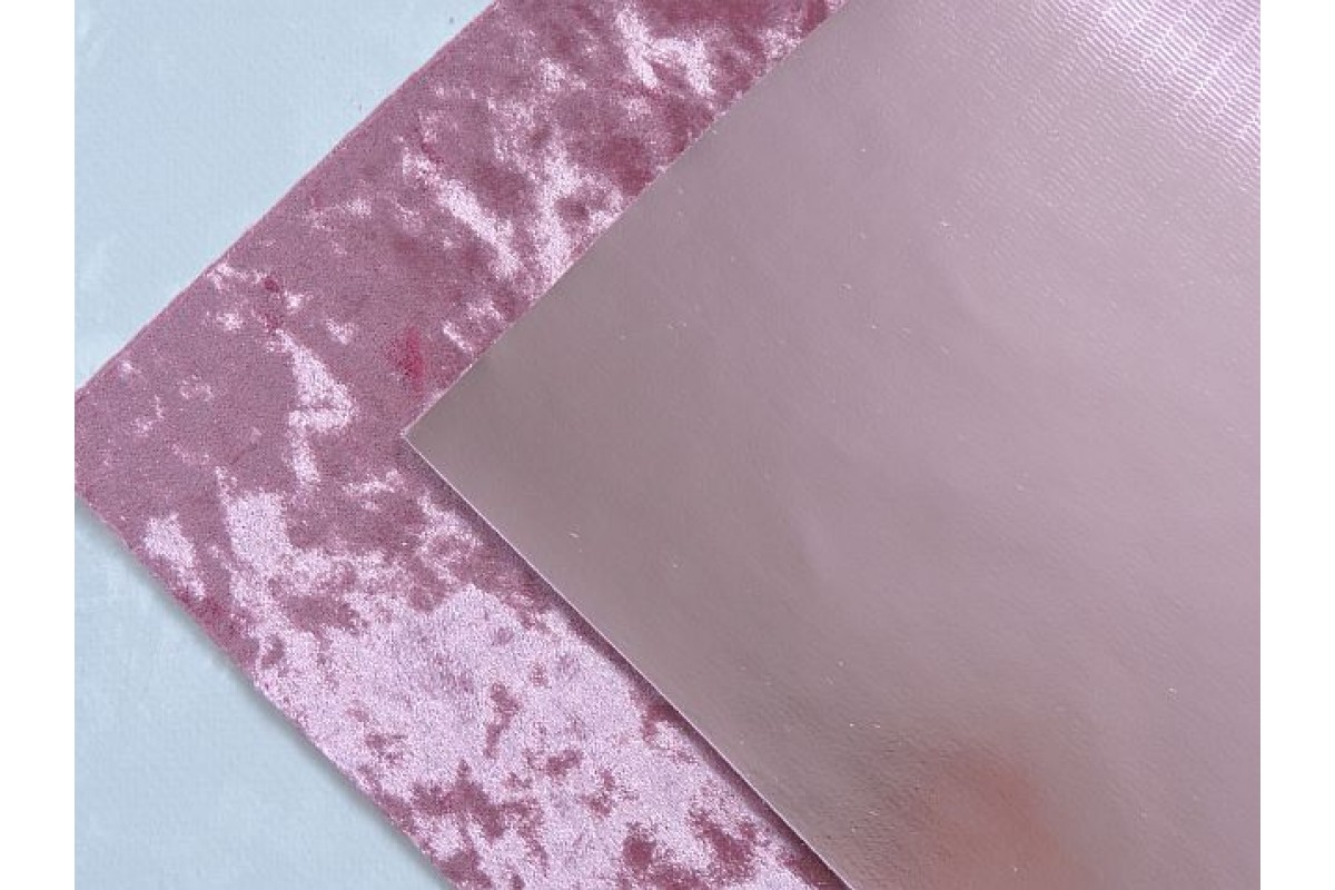 Кожзам двусторонний с бархатом, цв. пенка/розовый - 1 лист