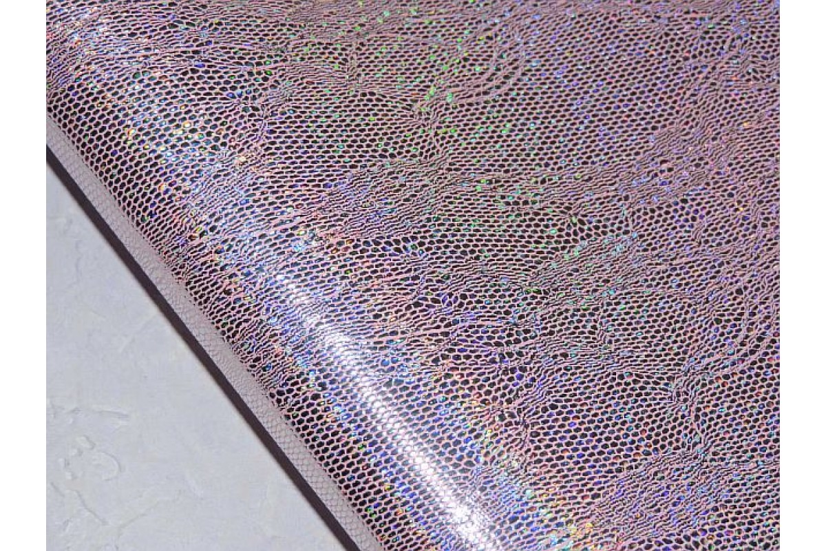 Кожзам "Голографик - кружево", цв. светло-розовый
