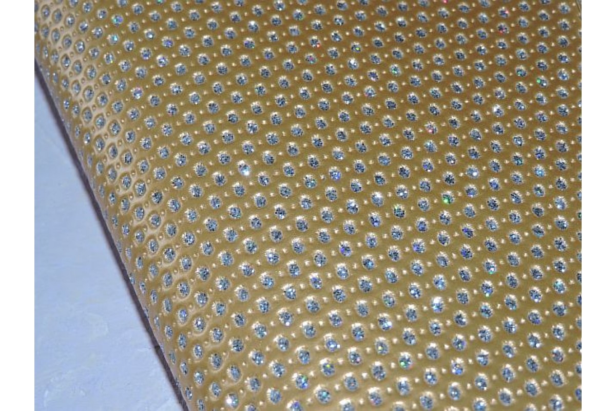 Кожзам "Горошек из блесток", цв. золото - 1 лист