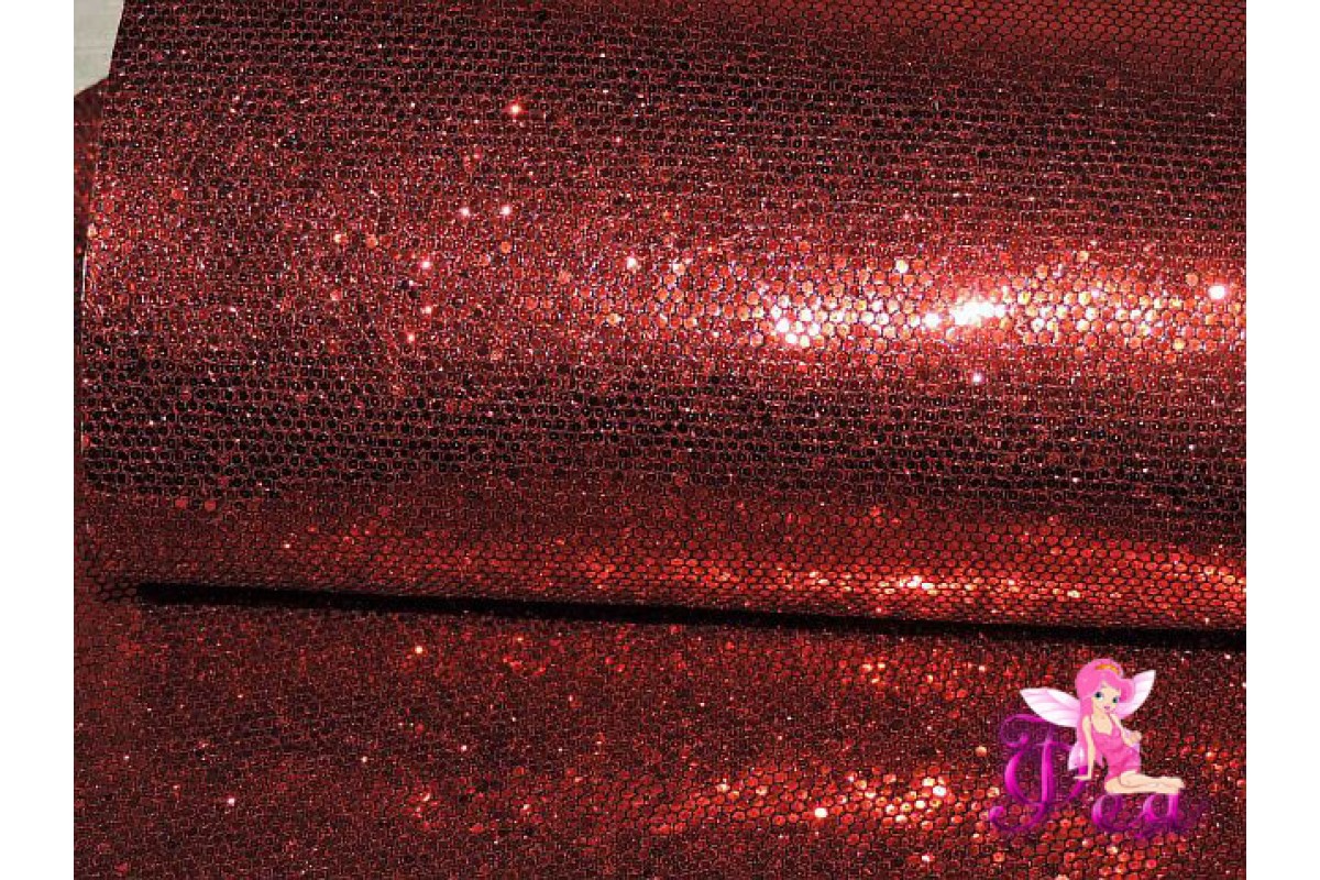 Искусственная кожа "Сетка-зеркальные блестки" 0.5 мм, цв. красный, 8014-5, Китай, Кожзам декоративный