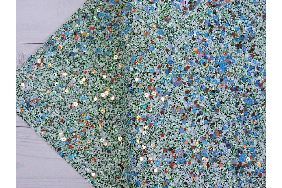 Кожзам "Блестки и пайетки", цв. зеленый/белый - 1 лист.