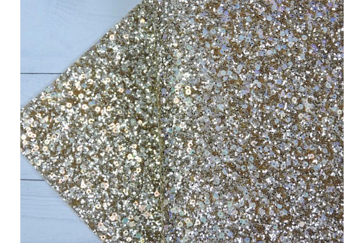 Кожзам "Блестки и пайетки", цв. золото - 1 лист., 232-968 нов, Китай, Кожзам с глиттером, блестками и пайетками