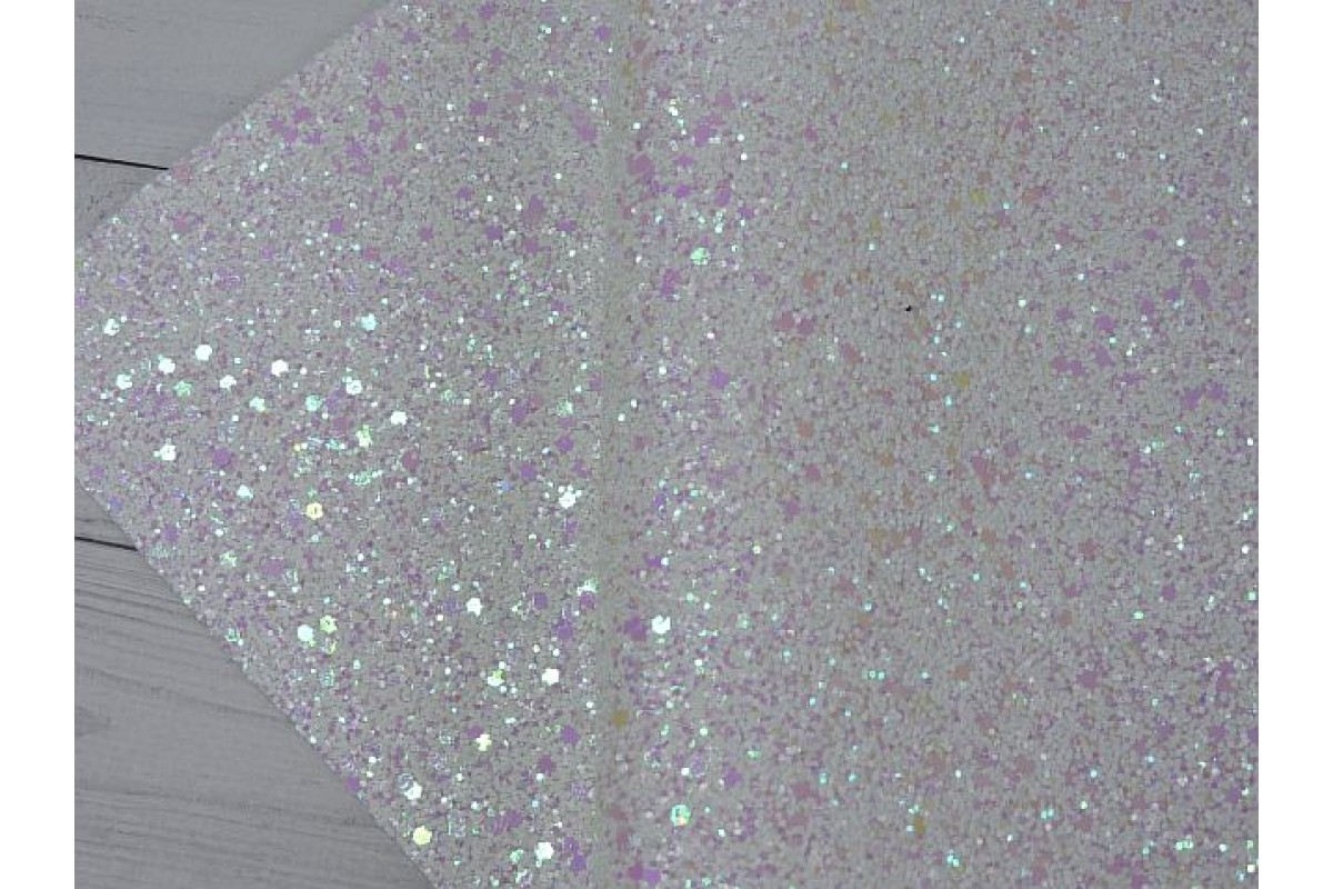 Кожзам "Блестки", цв. белый - 1 лист