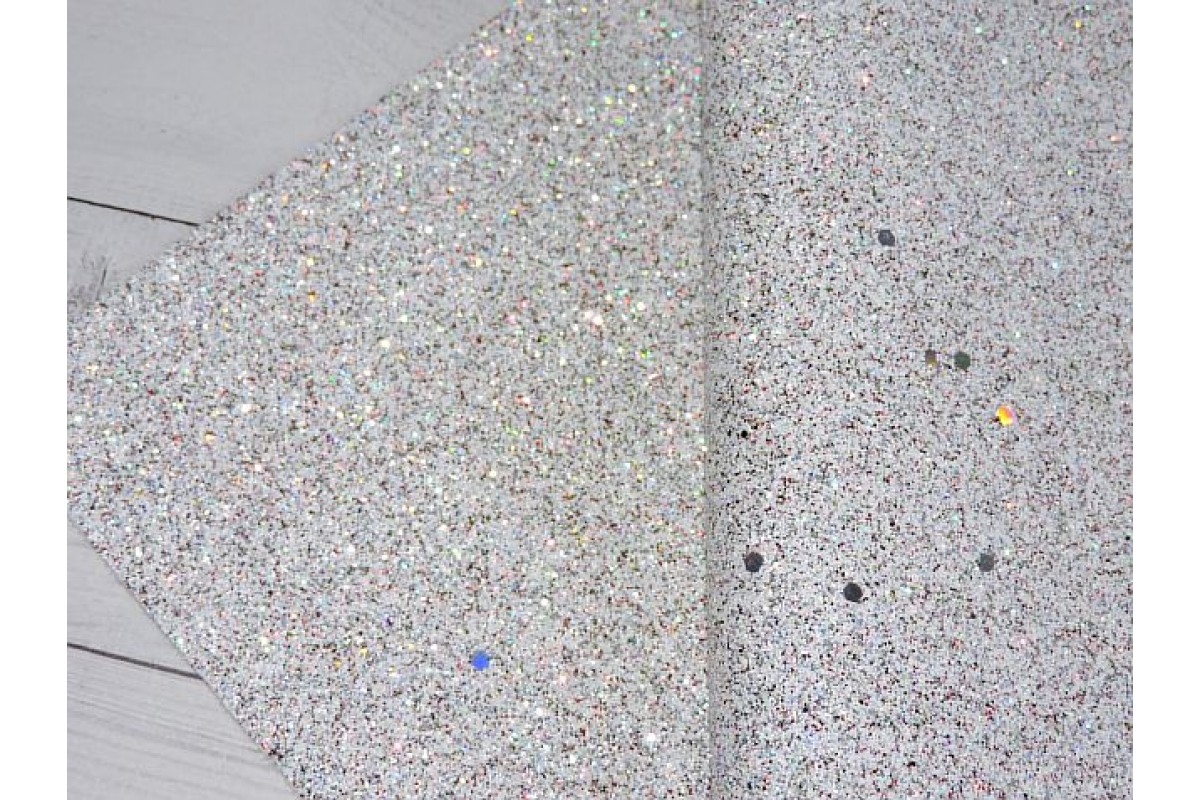 Кожзам "Блестки", цв. белый №11 - 1 лист