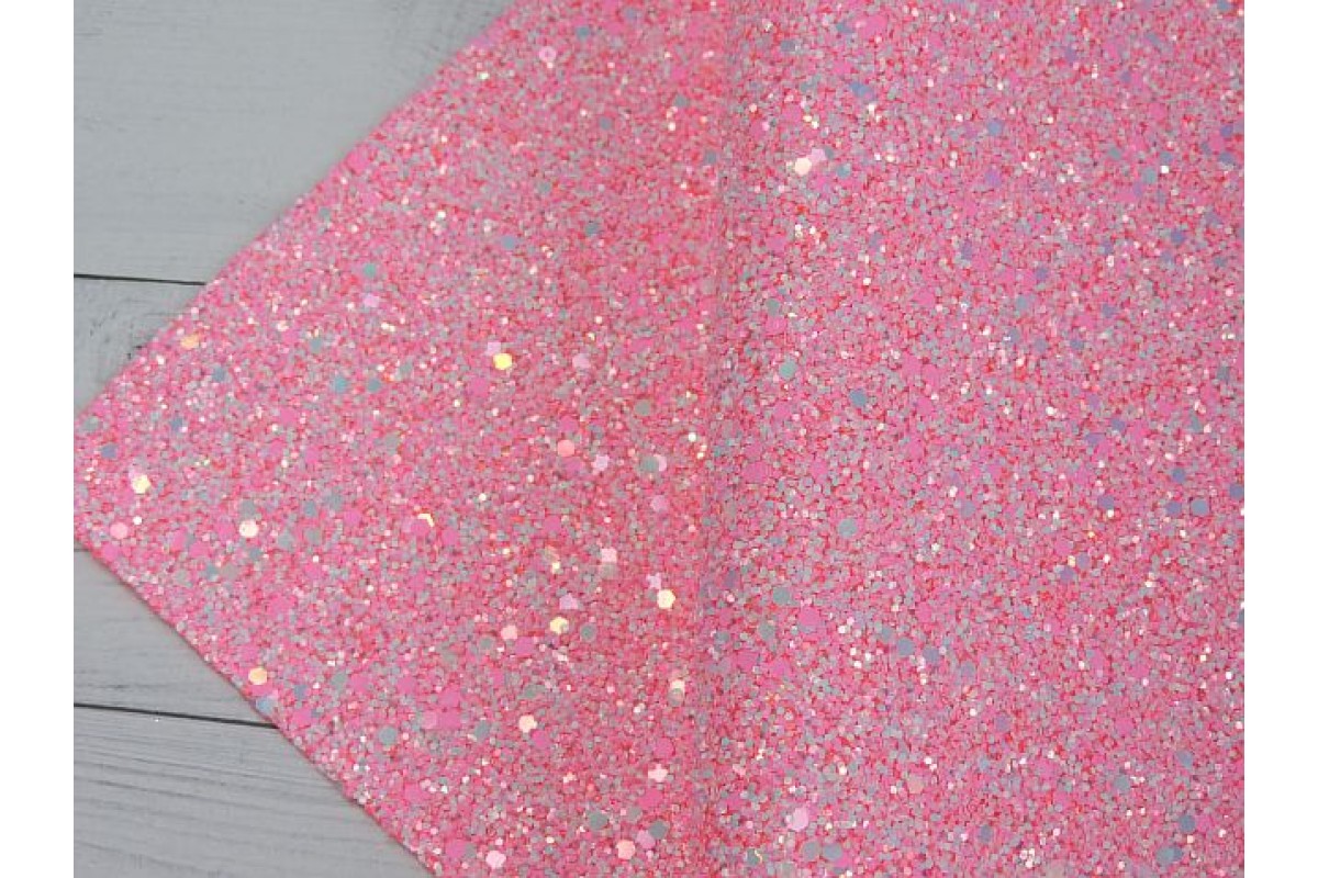 Кожзам "Блестки", цв. розовый - 1 лист, 232-921 нов, Китай, Кожзам с глиттером, блестками и пайетками