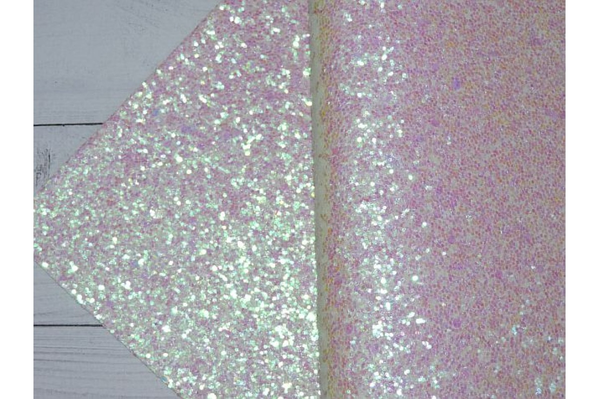 Кожзам с крупными блестками, цв. белый хамелеон - 1 лист.