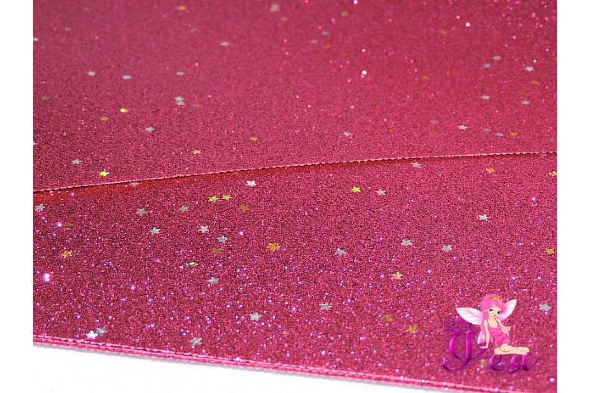Лист кожзам "Глиттер-звездочки", цв. фуксии