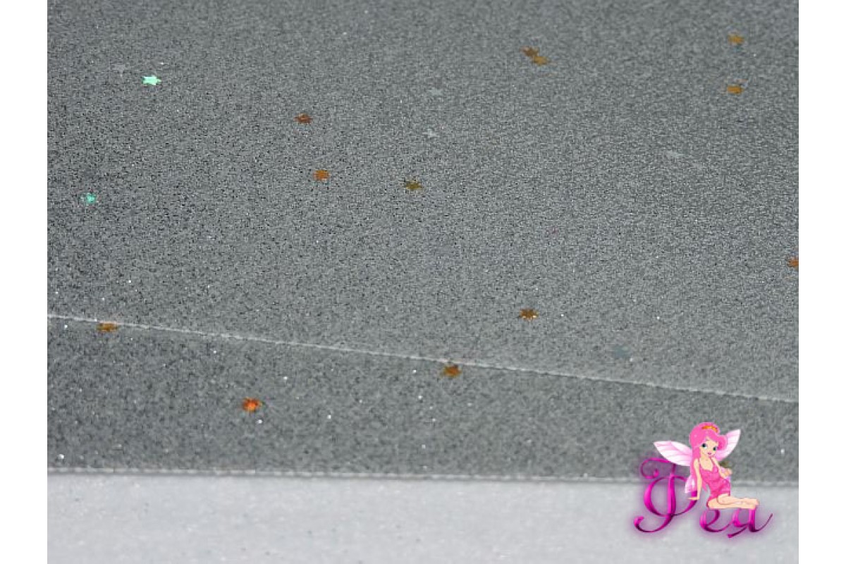 Лист кожзам "Глиттер-звездочки", цв. серебро