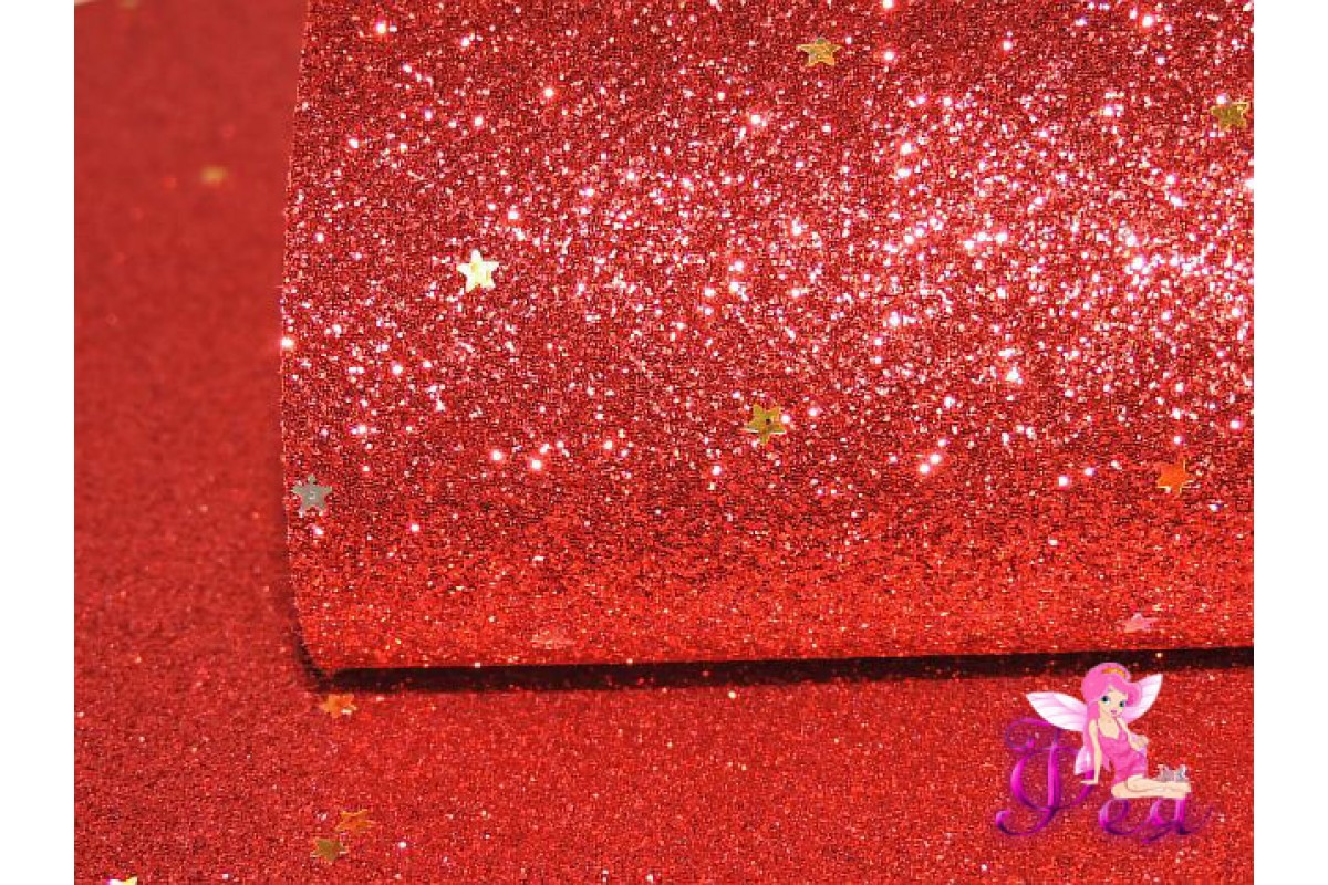 Лист кожзама "Глиттер-звездочки" цв. красный № 1