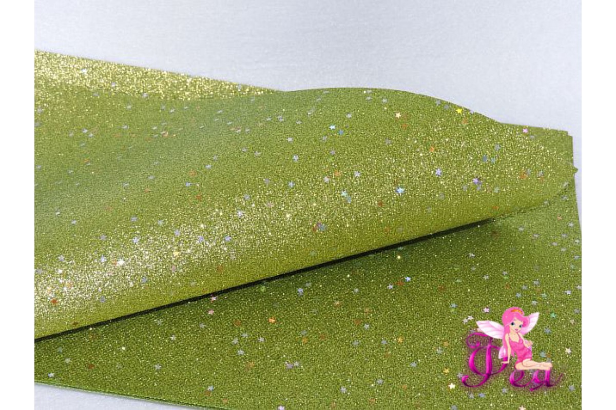 Лист кожзама "Глиттер-звездочки" цв. салатовый № 12
