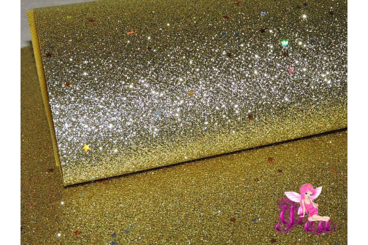 Лист кожзама "Глиттер-звездочки" цв. светлое золото № 2