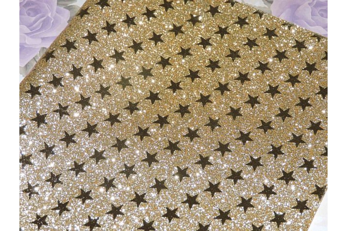 Козжам " Глиттер-звездочки", цв. золото, 232-269, Китай, Кожзам декоративный