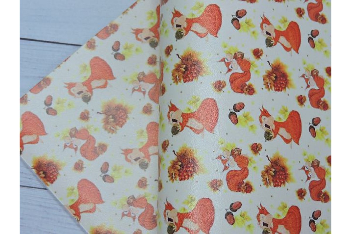 Кжзам "Белочка" - 1 лист, 233-019 нов, Китай, Кожзам с рисунком и принтом