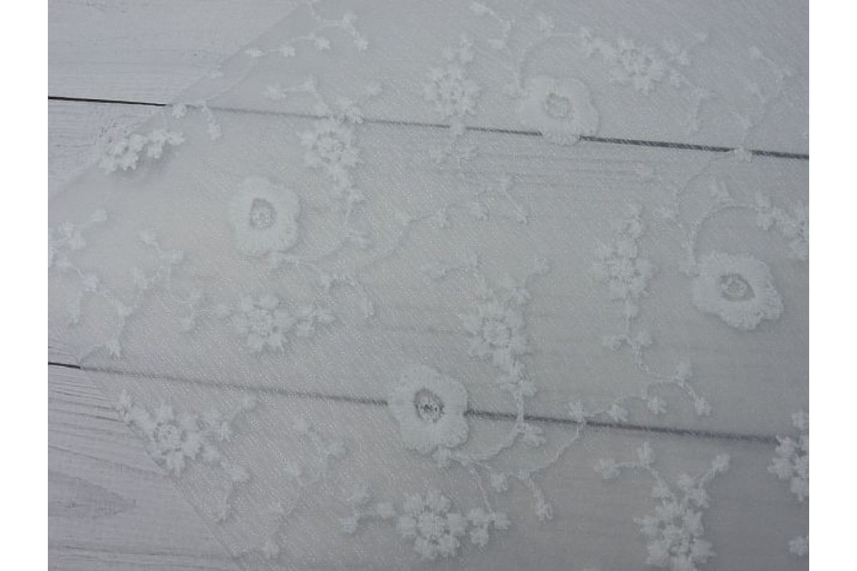 Пленка ПВХ с вышивкой "Цветочки", цв. белый - 1 лист