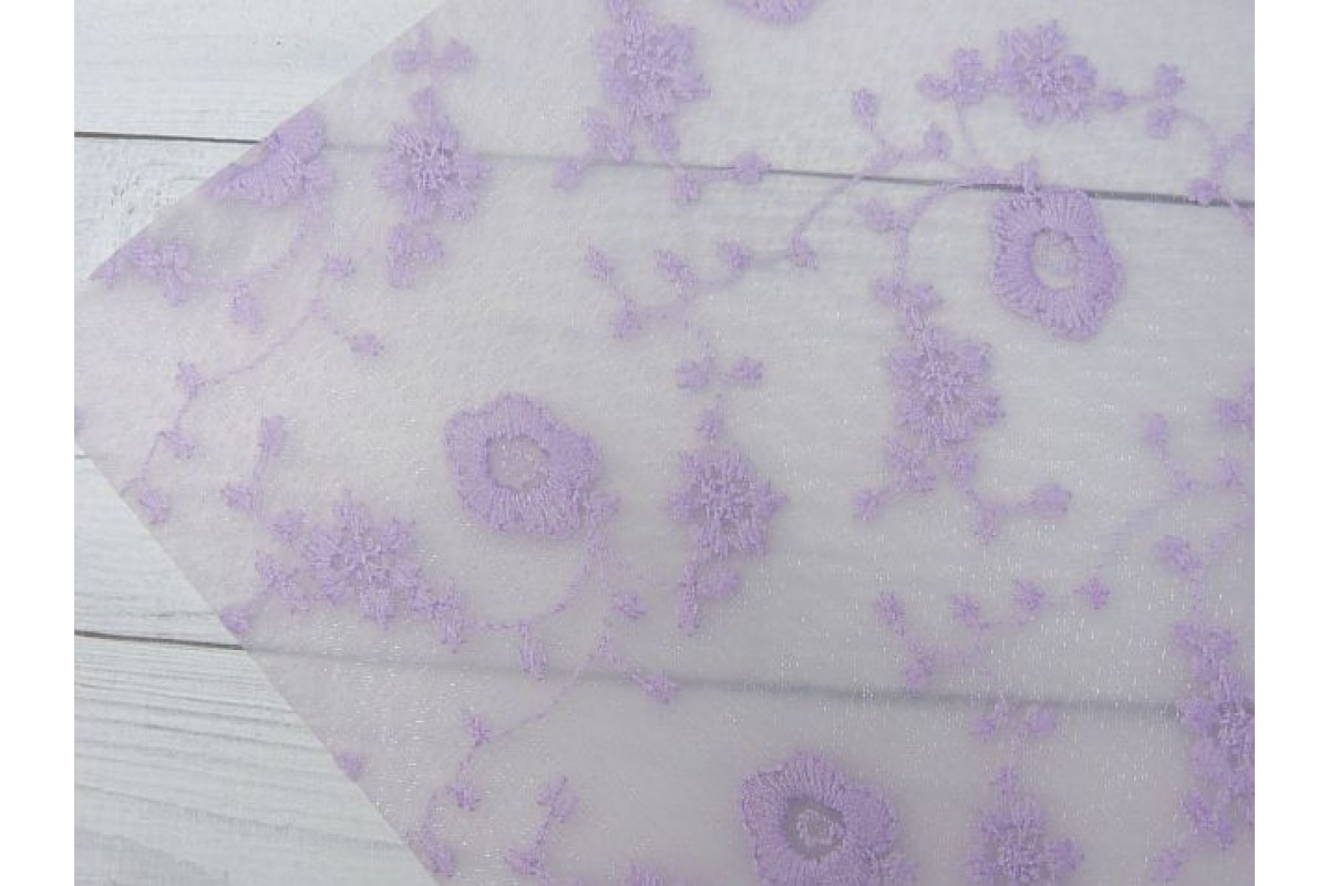 Пленка ПВХ с вышивкой "Цветочки", цв. сиреневый - 1 лист
