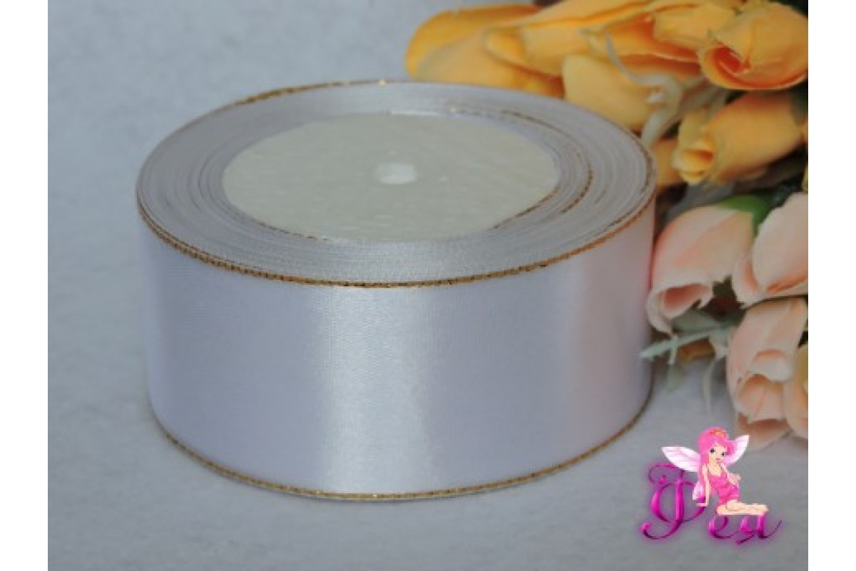 Атласная лента 40 мм с золотым люрексом, белого цвета