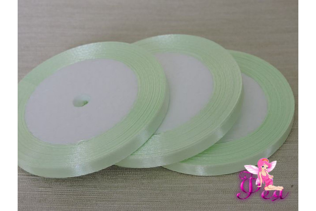 Атласная лента 6 мм*23 м, бледно-салатового цвета - 1 бобина
