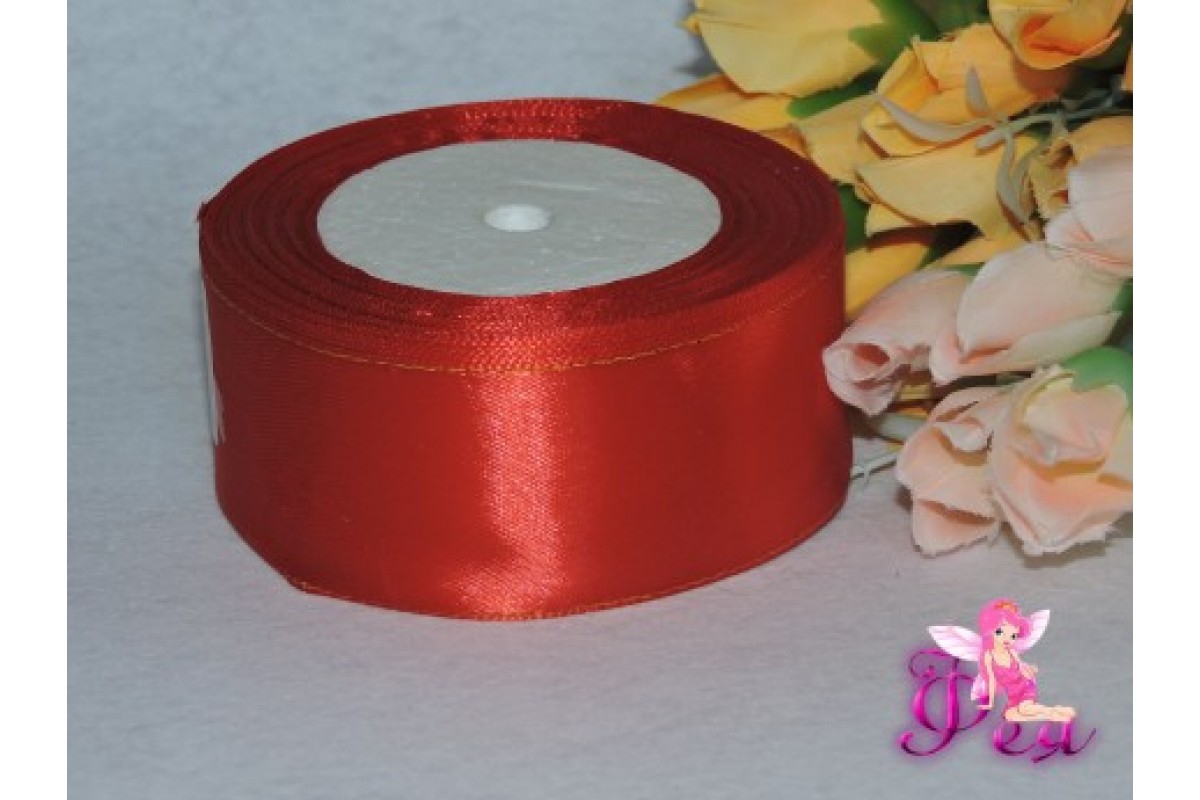 Атласная лента с люрексом 40мм красного цвета -1 м
