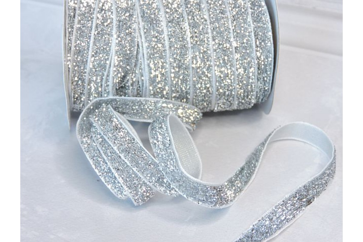 Лента бархатная 1 см, цв. белый/серебро - 1 м., 313-126, Китай, Бархатные ленты