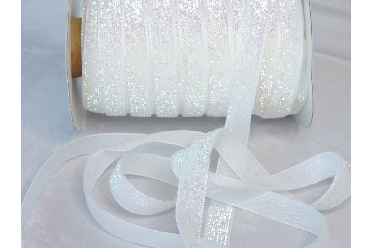 Лента бархатная 1 см, цв. белый хамелеон - 1 м., 313-124, Китай, Бархатные ленты